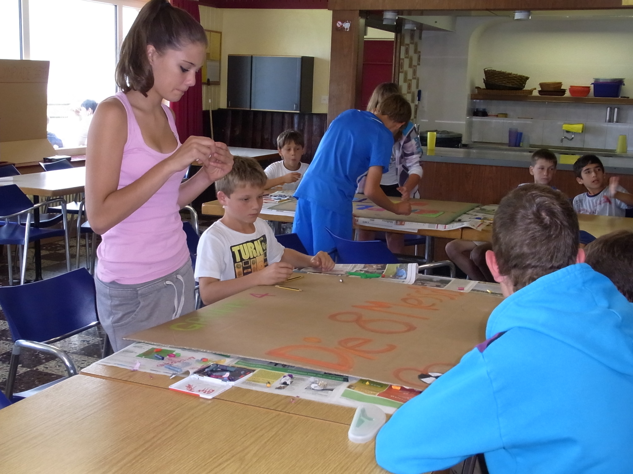 Nach diesem intensiven Programm am Morgen folgte am Nachmittag die nächste Disziplin der Lagerolympiade: Die Präsentation der Gruppennamen mit einem Plakat und einer passenden Show. Die 7 Gruppen bewiesen ihre Kreativität und ihre Entertainment-Qualitäten - die Jury konnte fast ausschliesslich gute Noten verteilen!